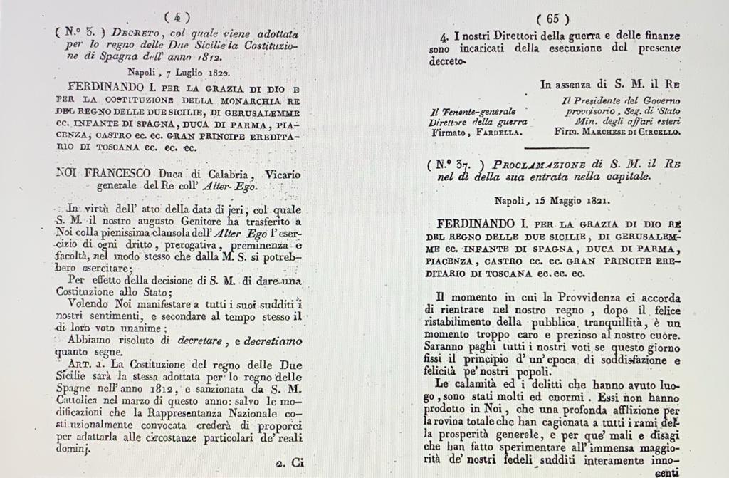 The Constitution lasted only a year. On March 24, 1821 it was revoked by the king himself, after the Austrian army, strongly wanted by him, entered Naples. However, those first uprisings and that first glimmer of recognition of a liberal regime represent an extraordinary episode of collective aspiration for freedom and unification of our country. This event gave rise to other revolts in 1821 in Alessandria and Turin, all repressed, up to get to the wars of independence.